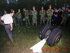 武警封鎖的墜機現(xiàn)場,和墜機的起落架。東方 攝