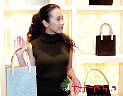 香港歌星莫文蔚7月9日在北京中國大飯店內(nèi)剛開業(yè)的法國(CELINE)賽琳專賣店內(nèi),品味法國情懷的產(chǎn)品。中新社記者 趙振清 攝