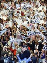 圖文:戈爾副總統(tǒng)為與夫人的激情之吻作辯護 2000年8月22日 17:32 ![]() 中新網(wǎng)華盛頓8月22日消息:美國副總統(tǒng)、民主黨總統(tǒng)候選人戈爾今天為自己在民主黨大會上與夫人的熱烈接吻作辯護,稱這不是出于競選策略。 戈爾今天在接受美國廣播公司的采訪時稱:“這一吻完全是自然的,這是我為了表示對夫人愛意作出的一個姿態(tài)! 這一接吻事件發(fā)生在民主黨大會的最后一天,當(dāng)戈爾副總統(tǒng)夫人叫戈爾發(fā)表接受總統(tǒng)提名的演說時,戈爾副總統(tǒng)在大庭廣眾熱吻了夫人。 同在競選中的美國政客為爭取選票的接吻不同,戈爾的吻是長時間的而且是有力的。據(jù)美國廣播公司稱這一吻持續(xù)了五秒鐘,而這使美國媒體大作文章,與此吻有關(guān)的文章就達107篇。 一位美國記者今天問戈爾:“你是否想通過這件事來告訴美國人,你是一個有感情的男人,以改變你在人們心目中的技術(shù)官僚的形象?” 戈爾副總統(tǒng)對此回答說:“我沒有想過這一點,我沒有把這作為我競選策略的一部分,我當(dāng)時確實非常感動。在數(shù)千人鼓掌和歡呼的人面前,我想與夫人共享這真正美好的情感! |