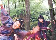 導演親自傳授劍法 《笑傲江湖》拍攝近尾聲 2000年9月7日 16:59 ![]() 中新網(wǎng)北京9月7日消息:央視40集電視連續(xù)劇《笑傲江湖》的拍攝已近尾聲。預計9月下旬即可正式關機。 目前,全劇的拍攝已進入最精彩的階段,令狐沖的絕活兒“獨孤九劍”頻頻亮相,而把這劍法傳授給他的,并非是武林高人,而是該劇導演黃健中。 為了使令狐沖的劍術亮相精彩,黃導特意設計了幾場精彩的武打戲。令狐沖的扮演者李亞鵬不僅扮相英俊,其劍術“速成”也很到位。他和于承惠飾演的風清揚的對手戲十分火爆。 此外金庸對《笑傲江湖》的拍攝十分關注,不時派人詢問進度,他對茅威濤飾演的東方不敗尤為滿意,認為她演出了神韻。 《羊城晚報》報道說,拍攝至今,金大俠還未看過央視版的樣片,所以在該劇停機之前,他打算再到劇組探班。據(jù)悉,該劇9月關機后,即返京進行后期制作,可望明年春天和觀眾見面。(完) 相關報道:《笑傲江湖》拍攝工作繼續(xù)進行 相關報道:《笑傲江湖》劇組遭遇火災 |