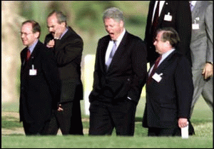 圖文:中東緊急峰會(huì)首日無進(jìn)展 2000年10月17日 07:19 克林頓希望以巴雙方能化解歧見,停止沖突。 克林頓為中東和平多年來盡力斡旋,在峰會(huì)休息時(shí)間,也出現(xiàn)了這個(gè)打呵久的倦態(tài)。 中新網(wǎng)北京10月17日消息:綜合通訊社報(bào)道,旨在結(jié)束巴以流血沖突的中東問題多邊首腦會(huì)議﹐星期一在埃及的紅海渡假勝地沙姆沙伊赫開幕﹐但巴勒斯坦文化新聞部長(zhǎng)拉博對(duì)記者說﹐會(huì)議至今沒有取得進(jìn)展。 綜合外電報(bào)道,聯(lián)合國(guó)秘書長(zhǎng)安南﹑巴勒斯坦民族權(quán)力機(jī)構(gòu)主席阿拉法特﹑以色列總理巴拉克﹑美國(guó)總統(tǒng)克林頓﹑約旦國(guó)王阿卜杜拉和歐盟負(fù)責(zé)外交和安全政策的高級(jí)代表索拉納出席了會(huì)議。 拉博表示﹐巴勒斯坦要求以色列不讓武裝的猶太定居者留在巴勒斯坦管治地區(qū)之內(nèi)。他還表示﹐以方提出了法塔赫組織持有武器的問題﹐以及要求重新逮捕巴勒斯坦警方最近釋放的哈馬斯分子的問題。 他指出﹕“他們(以色列)在這次峰會(huì)上的全部愿望﹐就是討論這兩件事。但這并不是我們來此的目的! 以色列總理巴拉克的安全首腦亞托姆說﹐這次峰會(huì)“情況復(fù)雜﹐充滿困難和爭(zhēng)執(zhí)”。但他又堅(jiān)稱各方“都有解決問題的真誠(chéng)愿望”。但以色列代表團(tuán)的另一名成員對(duì)此不以為然﹐指責(zé)巴勒斯坦人造成僵局。 埃及總統(tǒng)穆巴拉克在開幕式上發(fā)表講話﹐呼吁結(jié)束在巴勒斯坦領(lǐng)土上的“半戰(zhàn)爭(zhēng)狀態(tài)。”因?yàn)檫@種狀態(tài)已造成大量人員傷亡的悲劇。他呼吁“挽救和平進(jìn)程尚余的誠(chéng)信”。 他指責(zé)以色列說﹕“巴勒斯坦人民過去兩周所受到的侵犯﹐驅(qū)使我召集這次會(huì)議! 美國(guó)總統(tǒng)克林在峰會(huì)開幕辭中宣稱﹕“我們不能承受失敗。和平進(jìn)程的未來和中東地區(qū)的穩(wěn)定處于危急之中。” 克林頓呼吁設(shè)立調(diào)查團(tuán)去調(diào)查以巴雙方這次多年來最嚴(yán)重沖突的原因﹐避免事件重演。 他說﹕“我們希望談判能再次展開。” 但巴拉克在會(huì)上強(qiáng)調(diào)﹐“以色列不接受任何一種國(guó)際調(diào)查委員會(huì)﹐只會(huì)接受一個(gè)以美國(guó)為首的調(diào)查小組”。 作為中東和平進(jìn)程聯(lián)合發(fā)起者的俄羅斯﹐沒有出席中東峰會(huì)。外長(zhǎng)伊萬諾夫在莫斯科說﹕“我們沒有接到邀請(qǐng)。”但他對(duì)此反應(yīng)低調(diào)﹐稱峰會(huì)成果比俄羅斯是否參與更重要。 上午的會(huì)談歷時(shí)約三十分鐘?肆诸D和穆巴拉克分別致開幕辭之后﹐會(huì)議小休。 白宮發(fā)言人克勞利說﹐即使以巴雙方無法達(dá)成協(xié)議﹐克林頓也不打算再延長(zhǎng)停留期。他說﹐克林頓計(jì)劃于午夜離開﹐但可能會(huì)推遲十二小時(shí)。 雖然總統(tǒng)任期只剩下三個(gè)月左右﹐但克林頓仍然希望能夠促成和議。不過﹐對(duì)這次首腦會(huì)﹐最樂觀的期望亦只是一項(xiàng);饏f(xié)議和一個(gè)雙方重開談判的日期。 克林頓說﹕“我們不應(yīng)因?yàn)檫^去幾個(gè)星期發(fā)生的事而完全放棄一切! 阿拉法特﹑巴拉克和克林頓在首腦會(huì)召開前都分別與穆巴拉克會(huì)晤過。 一名以色列高官說﹐巴拉克對(duì)穆巴拉克說﹐除非阿拉法特重新逮捕近日被巴勒斯坦釋放的大批激進(jìn)分子﹐以及命令保安部隊(duì)停止開槍和參與街頭騷亂﹐否則他無法撤走以色列軍隊(duì)或重開巴勒斯坦地區(qū)! 巴勒斯坦議員兼政治分析員阿姆魯說﹕“我不認(rèn)為這次首腦會(huì)可以取得任何突破。即使有任何的成功﹐亦將是極之微小的﹐而且不保證可以使到緊張局勢(shì)結(jié)束! |