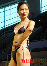 在日前結(jié)束的中國首屆職業(yè)模特選拔賽上,選自中國各地院的女模特選手在T型臺上一展風(fēng)采。圖為來自北京服裝學(xué)院的模特選手身穿泳裝展示。中新社記者 錢興強(qiáng) 攝