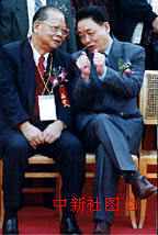 二十日,出席在福建龍巖舉辦的世界客屬第十六屆懇親大會開幕式的國務(wù)院僑辦主任郭東坡(右一)與香港知名人士曾憲梓親切交談。中新社記者 劉可耕 攝