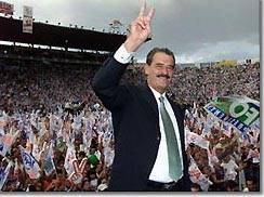 墨西哥當(dāng)選總統(tǒng)?怂菇裉炀吐殻ǜ綀D) 2000年12月1日 17:06 ![]() 中新網(wǎng)北京12月1日消息:墨西哥當(dāng)選總統(tǒng)?怂箤⒂诮裉煨木吐,他重申,他將使墨西哥發(fā)生巨大變化。墨西哥在過去71年來都在革命路線黨的統(tǒng)治之下。 將有二十多名政府首腦參加?怂沟木吐殐x式。作為行動(dòng)黨的領(lǐng)導(dǎo)人的?怂故侨ツ昶咴庐(dāng)選為墨西哥新總統(tǒng)的。?怂贡硎舅麑⑴c貧窮、毒品、腐敗現(xiàn)象作斗爭,并盡快與齊亞帕斯游擊隊(duì)達(dá)成協(xié)議。目前有5千萬墨西哥人生活在貧困線以下。 目前革命路線黨在500席的議會(huì)里仍控制著211席,并控制了31個(gè)州中的19個(gè)。- |