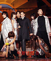反盜版巨星演唱會十一月三十日在上海大舞臺舉行。圖為馬來西亞人氣最旺的歌星茜蒂·諾哈麗莎(中)在表演。中新社記者 潘索菲 攝