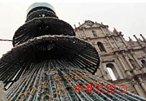 圖文:大三巴牌坊前擺放圣誕樹