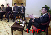 圖文:何厚鏵接受內(nèi)地傳媒集體采訪2 2000年12月14日 14:34 ![]() 在澳門回歸祖國(guó)一周年之際,行政長(zhǎng)官何厚鏵十三日在禮賓府接受內(nèi)地傳媒集體采訪。中新社傳真 宗金柱攝