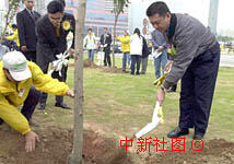 圖片:何厚鏵為回歸一周年植樹(shù) 2000年12月18日 15:59 ![]() 何厚鏵為回歸一周年植樹(shù)(橫片)。為慶祝澳門(mén)回歸一周年,特區(qū)行政長(zhǎng)官何厚鏵十七日在蓮花廣場(chǎng)附近種下一棵紀(jì)念樹(shù)。中新社傳真 宗金柱攝