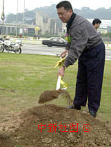 圖片:何厚鏵為慶祝澳門回歸一周年植樹 2000年12月18日 16:13 ![]() 為慶祝澳門回歸一周年,特區(qū)行政長官何厚鏵十七日在蓮花廣場(chǎng)附近種下一棵紀(jì)念樹。中新社傳真宗金柱攝