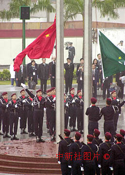 澳門特別行政區(qū)政府20日在金蓮花廣場舉行隆重的升旗儀式,慶祝澳門特區(qū)回歸祖國一周年。中新社傳真洪少葵攝