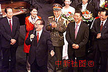 圖片:江澤民在文藝演出后走上舞臺高歌三曲 2000年12月20日 16:10 國家主席江澤民20日在慶祝澳門回歸祖國一周年慶祝大會文藝演出后走上舞臺,高歌三曲——《洪湖水》、《教我如何不想她》、《歌唱祖國》,贏得滿場掌聲。中新社傳真 滿會喬 攝