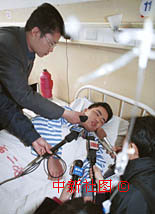 河南洛陽特大火災中的七名受傷者目前傷情穩(wěn)定,已經(jīng)脫離危險的受傷者立即成為媒體采訪的焦點。中新社圖 慎重 攝