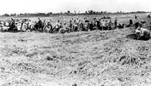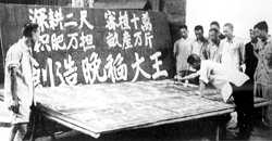 圖文:雞公山水稻畝產(chǎn)四萬八真相 2000年6月13日 16:36 ![]() 安徽省樅陽縣一塊號(hào)稱畝產(chǎn)1·6萬斤的 “衛(wèi)星田”。田里的稻子是從各地移來的 ![]() 大躍進(jìn)中,農(nóng)民表決心。照片據(jù)《圖片中國(guó)百年史》 張勝林(河南信陽) 。保梗担改辏乖拢比眨抨柨h雞公山人民公社新集大隊(duì)放出河南省水稻畝產(chǎn)特大“衛(wèi)星”:6畝6分3厘干部水 稻試驗(yàn)田總產(chǎn)324375·5斤,平均畝產(chǎn)48925·7斤。這顆大“衛(wèi)星”升天后,新華社隨即發(fā)了消息,轟動(dòng)全國(guó)。 全省各級(jí)領(lǐng)導(dǎo)親臨參觀和總結(jié)經(jīng)驗(yàn),9月9日《河南日?qǐng)?bào)》第二版以“雞公山上紅旗插,水稻畝產(chǎn)四萬八”的醒目標(biāo)題,對(duì)大 “衛(wèi)星”的組織施放作了詳細(xì)報(bào)道。 這個(gè)被大躍進(jìn)狂風(fēng)吹起來的水稻“衛(wèi)星”,雖在當(dāng)時(shí)被歌頌為信陽人民農(nóng)業(yè)大躍進(jìn)的偉大創(chuàng)舉,卻留下了一個(gè)謎 :照“衛(wèi)星”田里的水稻總產(chǎn)量計(jì)算,那么,這塊“衛(wèi)星”田平均每平方米就得產(chǎn)出稻谷73斤。然而,73斤稻谷就是放在 一平方米的空地里,也要堆出一定高度,何況稻谷結(jié)在稻穗上,直徑3毫米左右的稻莖又如何承受得了呢? 為了解開這個(gè)謎,我們對(duì)當(dāng)年目睹現(xiàn)場(chǎng)的一些同志進(jìn)行了反復(fù)調(diào)查訪問。在調(diào)訪過程中,這些同志不僅幫助我們 弄清了雞公山水稻畝產(chǎn)“四萬八”的真相,而且訴說了雞公山人民當(dāng)年吞下這個(gè)苦果的難言之苦。 信陽縣越改越大的躍進(jìn)規(guī)劃 。保梗担纺辏抨柨h和全國(guó)一樣,勝利實(shí)現(xiàn)和超額完成了國(guó)民經(jīng)濟(jì)第一個(gè)5年計(jì)劃,各條戰(zhàn)線出現(xiàn)了蓬勃發(fā)展的 局面。然而,由于從上到下對(duì)成績(jī)的宣傳夸張,使一些干部的頭腦發(fā)熱,在指導(dǎo)方針上出現(xiàn)了急于求成的“左”的冒進(jìn)。19 58年2月26日,中共信陽縣委召開擴(kuò)大會(huì)議,制定并通過了《信陽縣全面躍進(jìn)20條規(guī)劃》,號(hào)召和動(dòng)員全縣人民投入到 大躍進(jìn)的洪流之中。 。保梗担改辏翟,黨的八大二次會(huì)議通過總路線:“鼓足干勁,力爭(zhēng)上游,多快好省地建設(shè)社會(huì)主義”,在信陽 縣宣傳貫徹后,信陽掀起了大躍進(jìn)的高潮。同月底,中共信陽縣委、縣人委對(duì)《信陽縣全面躍進(jìn)20條規(guī)劃》進(jìn)行了補(bǔ)充修改 ,把1958年全縣糧食總產(chǎn)量從原規(guī)劃的8·5億斤提高到“保證實(shí)現(xiàn)14億斤,爭(zhēng)。保竷|斤”(這樣驚人的數(shù)字,信陽 縣不僅當(dāng)年沒有實(shí)現(xiàn),就是時(shí)隔30多年后農(nóng)業(yè)年景比較好的1996年,全縣糧食總產(chǎn)量也才達(dá)到9·5億斤,為1958 年規(guī)劃14億斤的67·8%)。同時(shí),中共信陽縣委還提出“十年規(guī)劃,一年實(shí)現(xiàn)”的躍進(jìn)口號(hào)。 外地衛(wèi)星的刺激 。保梗担改辏对,廣東省早稻畝產(chǎn)82525斤和河南省西平縣小麥畝產(chǎn)7320斤,這兩顆“衛(wèi)星”消息傳到 信陽縣后,信陽縣感到鼓舞和震動(dòng)。7月5日,中共信陽縣委召開擴(kuò)大會(huì)議,縣委提出:“必須認(rèn)識(shí)到今年是農(nóng)業(yè)生產(chǎn)大躍進(jìn) 的一年,不是要求增產(chǎn)幾成的問題,而是要翻幾番。因此,必須鼓足干勁,爭(zhēng)取更大勝利”。為了放出信陽縣的農(nóng)業(yè)高產(chǎn)“衛(wèi) 星”,縣委要求“樹立敢想、敢說、敢作、敢為的前進(jìn)思想,從而解放思想,破除迷信”。 。吩拢珖(guó)宣傳貫徹毛澤東主席關(guān)于把工、農(nóng)、商、學(xué)、兵組成為一個(gè)大公社的指示,信陽縣聞風(fēng)而動(dòng),在全信 陽地區(qū)率先建立人民公社。7月22日,中共信陽縣委在雞公山召開擴(kuò)大會(huì)議,決定撤銷全縣32個(gè)鄉(xiāng)、鎮(zhèn)及一個(gè)辦事處,成 立12個(gè)人民公社。縣委要求,各公社要借人民公社化的東風(fēng),更好組織農(nóng)業(yè)生產(chǎn)大躍進(jìn),并示意試辦農(nóng)業(yè)“衛(wèi)星”田塊。 縣委擴(kuò)大會(huì)議結(jié)束后,各公社開始籌劃具有本地特色的農(nóng)業(yè)“衛(wèi)星”,棉花、玉米、紅薯等都被列入“衛(wèi)星”計(jì) 劃之列。 雞公山準(zhǔn)備水稻“衛(wèi)星” 在籌劃“衛(wèi)星”時(shí),地處豫鄂交界的雞公山人民公社黨委提出,淮河北的西平縣能放出小麥畝產(chǎn)七千三的全國(guó)大 “衛(wèi)星”,我們淮河南的雞公山為何不能利用我們盛產(chǎn)水稻的優(yōu)勢(shì),放出水稻高產(chǎn)“衛(wèi)星”?只要有雄心,思想再解放,“ 衛(wèi)星”定能升天。為了選準(zhǔn)“衛(wèi)星”的試點(diǎn),公社黨委曾幾次召開會(huì)議研究,最終選擇新集大隊(duì)的一塊6畝6分3厘干部試驗(yàn) 田作為“衛(wèi)星”點(diǎn)。 這塊試驗(yàn)田在5月5日秧苗移栽時(shí),采用了3×3(行距、株距各3寸)的密植法,加之向這塊試驗(yàn)田投放的肥 料較多,公社黨委因之認(rèn)為,這為我們秋收放“衛(wèi)星”奠定了基礎(chǔ)(經(jīng)過實(shí)踐證明,3×3的密植法是一種違反科學(xué)的技術(shù)躍 進(jìn),它不僅破壞了光合作用,而且也不利于農(nóng)田管理,但3×3的密植法當(dāng)時(shí)卻作為農(nóng)業(yè)