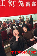 圖文:張藝謀執(zhí)導(dǎo)的芭蕾舞版《大紅燈籠高高掛》年后實(shí)排 2001年1月15日 19:25 ![]() 自稱(chēng)不會(huì)跳舞也不懂芭蕾舞的中國(guó)著名電影導(dǎo)演張藝謀,將首次執(zhí)導(dǎo)大型芭蕾舞劇《大紅燈籠高高掛》,這是張藝謀15日在北京中央芭蕾舞團(tuán)召開(kāi)的記者會(huì)上。中新社記者 王瑤 攝 ![]() 首次聯(lián)手合作的中國(guó)著名導(dǎo)演張藝謀和中央芭蕾舞團(tuán)團(tuán)長(zhǎng)趙汝蘅15日在北京一起出席大型芭蕾舞劇《大紅燈籠高高掛》的開(kāi)排記者會(huì)。中新社記者 王瑤 攝
