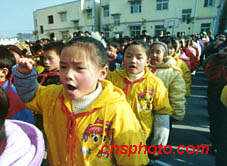 2月14日下午,安徽省繁昌縣實驗小學舉辦“相信科學反對迷信”宣誓大會,近千名學生在莊嚴的國旗下宣誓:相信科學,反對迷信,遠離法輪功。中新社圖 吳芳 攝