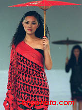 中國新絲路模特公司,二十二日晚在北京嘉里中心飯店,舉行赴德國服飾表演。圖為根據(jù)中國少數(shù)民族服飾創(chuàng)新設(shè)計(jì)的現(xiàn)代服飾作品。中新社圖 東方 攝