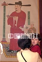 “張大千臨摹敦煌壁畫及大風堂用印展”十八日在澳門文化中心舉行,展出著名畫家張大千于四十年代臨摹敦煌莫高窟壁畫的一百三十三幅作品,圖為觀眾觀看一幅五代時期壁畫的的設(shè)色絹摹本。中新社傳真 宗金柱攝