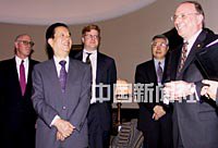 美東時間19日中午,國務院副總理錢其琛會見美國工商金融界人士時說,次日,他將與美國主流媒體負責人共進早餐。公司老板們對錢其琛開玩笑說:“那他們肯定會提很多問題難為你的!辟e主聽后大笑。中新社記者 陳建 攝