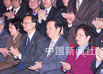 國務院副總理錢其琛日前會見中國駐紐約總領館、常駐聯(lián)合國代表團、其他常駐機構及紐約僑學界代表。錢其琛副總理和夫人、中國駐美大使楊潔篪大使和夫人與紐約僑界代表合影留念。中新社圖 陳建 攝