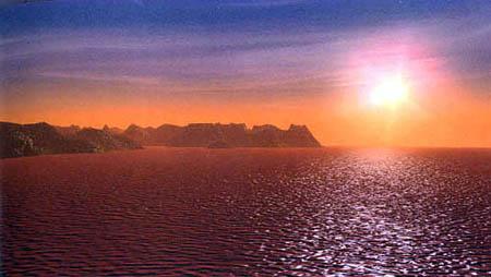 圖文:科普大片《宇宙與人》全文解說詞 2001年3月27日 11:03 ![]() 在地球的某個時期,海洋中充滿了被氧化的鐵銹,海水呈現(xiàn)出紅色 物質(zhì)的宇宙能夠演化出生命,目前我們惟一所知道的就是我們自己的太陽系,但準確地說,生命很吝嗇地只選擇了它的第3顆行星———地球,生命在這顆星球上誕生并且改造這顆星球長達近40億年。從生態(tài)上看,地球的美麗是獨一無二的,然而今天的地球因為有了人類,就不僅是生態(tài)星球,同時還是一顆文明星球。 地球上惟一直立行走的智能生物———人類,今天已經(jīng)非常輕松地生活在這顆行星上,但是,從古老文明走到現(xiàn)代文明,人類付出了巨大的代價。而二者之間的跨越的關(guān)鍵,恰恰要取決于人類認識宇宙的深度。 望遠鏡的原始創(chuàng)意 盡管有很多史前文明都顯示了人類認知宇宙的興趣,但在中國四川西部三星堆發(fā)現(xiàn)的3000多年前的青銅器,大概是表現(xiàn)得最執(zhí)著的了。這是一個向往飛翔的古老集體,鳥是他們普遍的偶像,鳥的眼睛被深深地崇拜著,而他們自己的眼睛,更被夸張地塑造了。這可能是人類最早的期望通過眼睛這個器官的延長,而求索宇宙的向往,這也許是望遠鏡的最原始的創(chuàng)意。 事實是,這種愿望終于在400多年前得到了實現(xiàn)。人類的眼睛真的延長了,望遠鏡給人類文明所起的作用,可以說超過一切其它單件的工具,因為沒有它,就沒有可能了解天體的基本運動,也就沒有對神的勇敢的否定,就沒有可能在天體的觀察中得到的牛頓定律,也就沒有以這個定律為基礎(chǔ)的現(xiàn)代工業(yè)社會。人類在400多年前通過望遠鏡在宇宙中獲得了駕馭物質(zhì)的法則,于是,我們的生活就從此日新月異。 太陽是我們擁有的一顆恒星。今天,人類對宇宙已經(jīng)看得更遠,理解得更深刻,這種理解使我們已經(jīng)能夠認識宇宙作為一個整體的物質(zhì)運動,并且更加明確地認識到我們是物質(zhì)運動的結(jié)果,而宇宙中的星辰,就是全部物質(zhì)運動的最重要的動力。 我們把自己擁有的一顆恒星叫做太陽,它的光輝對地球的生命是最根本的,陽光在地球表面已經(jīng)掠過了40多億年,今天的生態(tài)就是純粹陽光的塑造,這種塑造使得地球擁有了一個長達40億年的生命鏈,這個鏈條其實就是固體的陽光,因為生命的本質(zhì)的含義就是把光能變成物質(zhì)的新陳代謝。 現(xiàn)在,我們可以精確地知道,這顆價值非凡的發(fā)光體非常的巨大,它的直徑相當(dāng)于110個地球,它的表面是6000度的高溫,經(jīng)過一億五千萬公里空間的傳輸,地球只得到它的光輝的5億分之一,但這已經(jīng)足夠了。 它的質(zhì)量相當(dāng)于33萬個地球,但盡管這么大,如果全部是煤,發(fā)出同樣的光和熱只能燒幾千年。然而,它穩(wěn)定地?zé)?0億年,是什么東西這么經(jīng)燒呢? 人類的燃燒概念是火,用一堆樹枝燃燒幾個小時,這就是我們的獲取能量的概念。這個基本的方式一直主導(dǎo)著人類的文明,但這種燃燒根本沒有使用宇宙中真正的能量寶庫———原子核,在本質(zhì)上,木頭的燃燒只是原子們互換位置放出一些化學(xué)能,燃燒后,原子核的質(zhì)量一點沒有減少。 而太陽的燃燒和篝火原理完全不同,它在讓原子核燃燒。愛因斯坦用著名的質(zhì)能轉(zhuǎn)換的公式計算出,核能量能達到普通化學(xué)能量的2000萬倍。宇宙中最高效的核能是氫聚變成氦,也就是4個氫原子聚變成一個氦原子,這個過程可以有千分之七的物質(zhì)轉(zhuǎn)換成能量,雖然只有千分之七,但物質(zhì)的能量太大,如果把1000克氫原子中千分之七的物質(zhì)轉(zhuǎn)換成能量,就相當(dāng)于4000噸石油和6000噸煤。 在一節(jié)只能燒幾分鐘的樹枝中所蘊藏的核能,足以把一盞100瓦的燈泡點亮100萬年。 太陽就是一個奢侈的使用核能的天體。 宇宙的物質(zhì)結(jié)構(gòu) 那么,怎樣才能燃燒原子核呢?這就要看我們宇宙的物質(zhì)結(jié)構(gòu)了。物質(zhì)本身沒有行為,而物質(zhì)中蘊含了4種力卻決定了宇宙的一切。其中最強的是強力,它存在于強子之中,核能就是靠它產(chǎn)生的,但這種力只在原子核的直徑范圍起作用,所以,產(chǎn)生核能就必須讓它們相互接觸,也就是核聚變。 核聚變必須有中子,而另一種弱力,能使質(zhì)子衰變成中子,并釋放出射線,這個力是核聚變不可缺少的。 而能否使核聚變發(fā)生,關(guān)鍵卻在于電磁力,它比強力弱100多倍,不過它延伸得比強力遠,所以一般情況下強力被電磁力封閉著,如果突破不了電磁力,就不會有核聚變。其實電磁力是一種非常溫和而美好的力,它天生就有正和負,永遠不會過分,所謂陰陽生萬物,因此它就構(gòu)成了宇宙中最豐富的物質(zhì)演化,包括生命。 引力是最弱的力,在單個原子中比電磁力弱幾萬萬億倍,但宇宙對它幾乎沒有限制,因此它將會以多勝少,最終統(tǒng)治宇宙。 構(gòu)成我們生命的主要是電磁力,強力和弱力被封閉著,而引力在我們身體中可以被忽略,但我們的身體卻能感覺到地球的引力,因為引力會隨著物質(zhì)的增大而顯示出來。我們舉起重物時,就是肌肉中的電磁力在和地球的引力做抗衡,人們很多的鍛練方法,就是用地球的引力來增長我們肌肉中的電磁力的能量。 是引力最終打敗電磁力,是當(dāng)一個物體變得像太陽這么大的時候,這不僅能控制