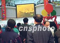 北京市民5日聚集在一家商廈內(nèi)的巨幅電視屏前,密切關注被美機撞毀的中國軍用飛機飛行員下落的最新消息。中新社記者 王瑤 攝