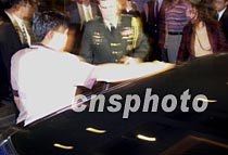 美國駐華使館官員席樂高等人七日晚十時許在海口文華大酒店乘坐中方安排的車輛,第三次與美國軍用偵察機(jī)機(jī)組人員見面。中新社記者 賈國榮 攝