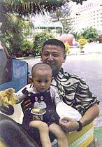 中國(guó)飛行員王偉與兒子(資料圖片)