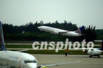 美國軍用偵察機的機組人員十二日清晨搭乘美國專機,從中國海南省?谑忻捞m機場起飛離境。中新社記者 賈國榮 攝