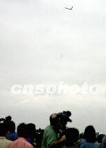 中外記者十二日凌晨七時(shí)許在中國海南省海口市美蘭機(jī)場(chǎng)邊,遠(yuǎn)遠(yuǎn)地目擊搭載美國軍用偵察機(jī)機(jī)組人員的美專機(jī)起飛離境。中新社記者 賈國榮 攝