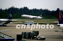 一架美國租用的客機(jī)十二日凌晨七時(shí)三十九分從中國海南省?谑忻捞m機(jī)場起飛離地,搭載美國軍用偵察機(jī)的機(jī)組人員離境回國。中新社記者 賈國榮 攝
