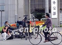 在北京外交部大樓舉行的中美談判,引起中外媒體記者的關(guān)注。在外交部門口擺開陣勢等著抓拍新聞的中外記者成為京城的一道風(fēng)景。中新社記者 滿會(huì)喬 攝