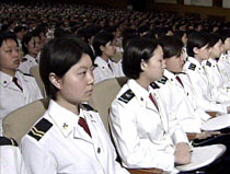 中國海軍女兵與解放軍四總部官兵代表兩千余人,二十四日在北京參加中央軍委授予王偉烈士“?招l(wèi)士”榮譽(yù)稱號命名大會。