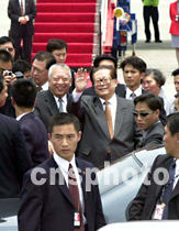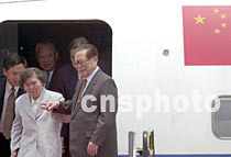 ![]() 江澤民抵香港國際機(jī)場。國家主席江澤民五月八日中午抵達(dá)香港國際機(jī)場。中新社傳真 任海霞攝