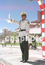 圖:拉薩市的第一支女子交通警察隊(duì) 2001年5月9日 20:12 ![]() 西藏首府拉薩市的第一支女子交通警察隊(duì),十五日正式上崗,隊(duì)長索朗德吉在布達(dá)拉宮前的崗臺指揮交通。這支女子交警隊(duì)的七名隊(duì)員中有六名是藏族。中新社圖 王魯平 攝