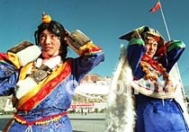 被稱為“陽光之城”的拉薩市,冬天仍陽光燦爛。兩位穿著盛裝的藏族婦女在布達(dá)拉宮前細(xì)心打扮,準(zhǔn)備照相。中新社圖 吳新華 攝