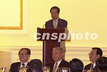受江澤民主席委托,五月九日副總理錢其琛在午宴上致辭。中新社傳真 任海霞 攝