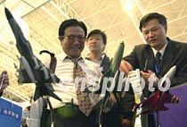 中國航空博物館五月在北京國際科技博覽會上展示國產(chǎn)新型戰(zhàn)機(jī)模型,一名臺灣商人頗感興趣地商洽訂貨,其中包括海南中美撞機(jī)事件里的殲八型戰(zhàn)機(jī)模型。中新社記者 賈國榮 攝