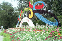 在北京古老的皇家園林蒼松翠柏前,一座用歐洲名花郁金香搭制的申辦奧運(yùn)會圖案,亦美亦香。中新社記者 賈國榮 攝