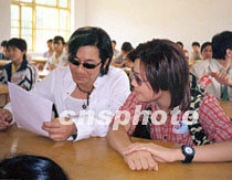 “星火行動”之粵北科教新紀(jì)元扶貧助學(xué)系列活動,五月十四日至十六日在韶關(guān)市拉開序幕。“星火愛心大使”王杰、容祖兒來到始興縣澄江中學(xué),與學(xué)生一起上物理課。中新社圖 馮昶 攝