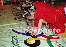 由廣州市婦聯(lián)主辦的“廣州兒童支持北京申奧”簽名活動,六月一日在廣州舉行,長長的巨幅橫額簽滿了數(shù)千小朋友的名字。中新社記者 羅仰明 攝