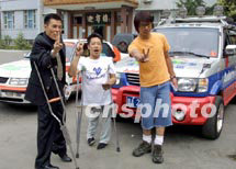 圖文:“萬里行”車隊喜逢不尋常的志同道合者 2001年6月5日 11:36 ![]() “萬里行”車隊文藝大使、歌手紅豆與殘疾人申奧車隊共勉為北京申奧助威。中新社圖 魏孝明 攝 ![]() 身為九家公司總裁的殘疾人孫杰駕車萬里迎奧運。中新社圖 魏孝明 攝