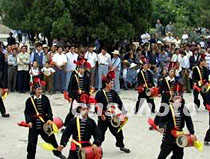 圖:“萬(wàn)里行”抵達(dá)武威市 2001年6月11日 09:16 ![]() 6月10日下午,“萬(wàn)里行”鳳凰車隊(duì)抵達(dá)河西走廊東端的武威市。當(dāng)?shù)乩相l(xiāng)在市區(qū)文化廣場(chǎng)以“攻鼓子”方隊(duì)歡迎,表達(dá)西域人民對(duì)北京申奧的支持。中新社圖 魏孝明 攝