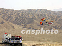 圖:“萬里行”申奧鳳凰車隊(duì)抵達(dá)嘉峪關(guān) 2001年6月12日 10:41 ![]() 六月十一日,“萬里行”申奧鳳凰車隊(duì)抵達(dá)嘉峪關(guān)。圖為車隊(duì)行進(jìn)在戈壁灘上,飛機(jī)正在航拍車隊(duì)穿越“天下第一雄關(guān)”的情景。中新社圖 魏孝明 攝
