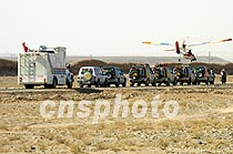 圖:“萬里行”申奧鳳凰車隊抵達嘉峪關 2001年6月12日 10:44 ![]() 六月十一日下午四時許,“萬里行”申奧鳳凰車隊抵達嘉峪關,圖為車隊行進在戈壁灘上,飛機正在航拍車隊在穿躍“天下第一雄關”時的情景。中新社圖 魏孝明 攝
