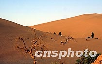 圖:夕陽(yáng)下的月牙泉景觀 2001年6月13日 09:13 ![]() 敦煌鳴沙山下月牙泉邊,流傳著一段美麗動(dòng)人的愛(ài)情故事:當(dāng)?shù)匾晃槐诋?huà)匠愛(ài)上將軍的女兒,但婚事遭到將軍的阻撓,二位情人殉情后分別化作鳴沙山和月牙泉,山擁抱著泉,泉水源源流長(zhǎng)上千年。圖為夕陽(yáng)下的山泉景觀。中新社圖 魏孝明 攝