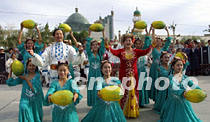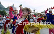 圖:“哈密瓜”喜迎“萬里行”車隊(duì) 2001年06月15日 08:11 ![]() ![]() ![]() ![]() ![]() 6月14日,“北京——莫斯科申奧萬里行”鳳凰車隊(duì)進(jìn)疆抵達(dá)哈密市,當(dāng)?shù)孛癖娫诠芡趿昵懊媾e行盛大儀式,歡迎遠(yuǎn)道而來的客人。由哈密歌舞團(tuán)表演的“哈密瓜”等民族歌舞奔放熱烈,表達(dá)了維吾爾族人民對北京申奧活動的深情厚誼。中新社圖 魏孝明 攝 |
