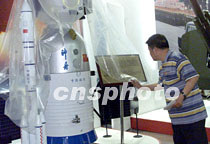 圖:“神舟”飛船模型亮相建黨圖片展 2001年06月18日 17:08 ![]() 一九九九年飛行試驗(yàn)取得圓滿成功的“神舟”飛船模型即將在20日開幕的中共建黨80周年圖片展亮相。中國第一艘無人太空船“神舟號”試飛成功是中國航天史上一項重要的里程碑,同時也標(biāo)志著中國將進(jìn)入載人航天時代。中新社記者 滿會喬 攝