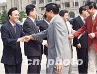 組圖:北京奧申委代表團啟程赴莫斯科 2001年07月07日 20:29 ![]() 以北京奧申委主席、北京市市長劉淇為團長的北京奧申委代表團七日乘專機離京赴莫斯科,出席國際奧委會在莫斯科舉行的第112次全會。圖為北京市和國家體育總局有關人士到首都國際機場為代表團送行。中新社記者 錢興強 攝 ![]() 北京奧申委代表團七日乘專機赴莫斯科,出席國際奧委會在莫斯科舉行的第112次全會。圖為北京奧申委主席、北京市市長劉淇(前右)與國家體育總局局長袁偉民(左)離行前在首都國際機場。中新社記者 錢興強 攝