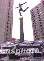 7月10日,在莫斯科世貿(mào)中心酒店前的階梯噴泉開始噴水,迎接將于12日召開的國際奧委會112次會議。中新社記者 王瑤 攝