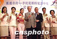 組圖:「鳳凰有約-李玟莫斯科見證申奧」記者會 2001年07月11日 00:27 ![]() 鳳凰衛(wèi)視10日在香港舉行「鳳凰有約-李玟莫斯科見證申奧」記者會。鳳凰衛(wèi)視常務(wù)副行玫總裁梁濃剛(中)、執(zhí)行副總裁楊家強(右三)與鳳凰衛(wèi)視眾主持人及歌星李玟在記者會上為期待北京申奧成功舉杯。中新社圖 鄧慶樂 攝 ![]() 鳳凰衛(wèi)視10日在香港舉行「鳳凰有約-李玟莫斯科見證申奧」記者會。特邀歌星李玟、影星周星馳于投票當(dāng)日(7月13日)親赴莫斯科,見證歷史性的一刻,李玟在記者會上介紹北京申奧標(biāo)志。中新社圖 鄧慶樂 攝